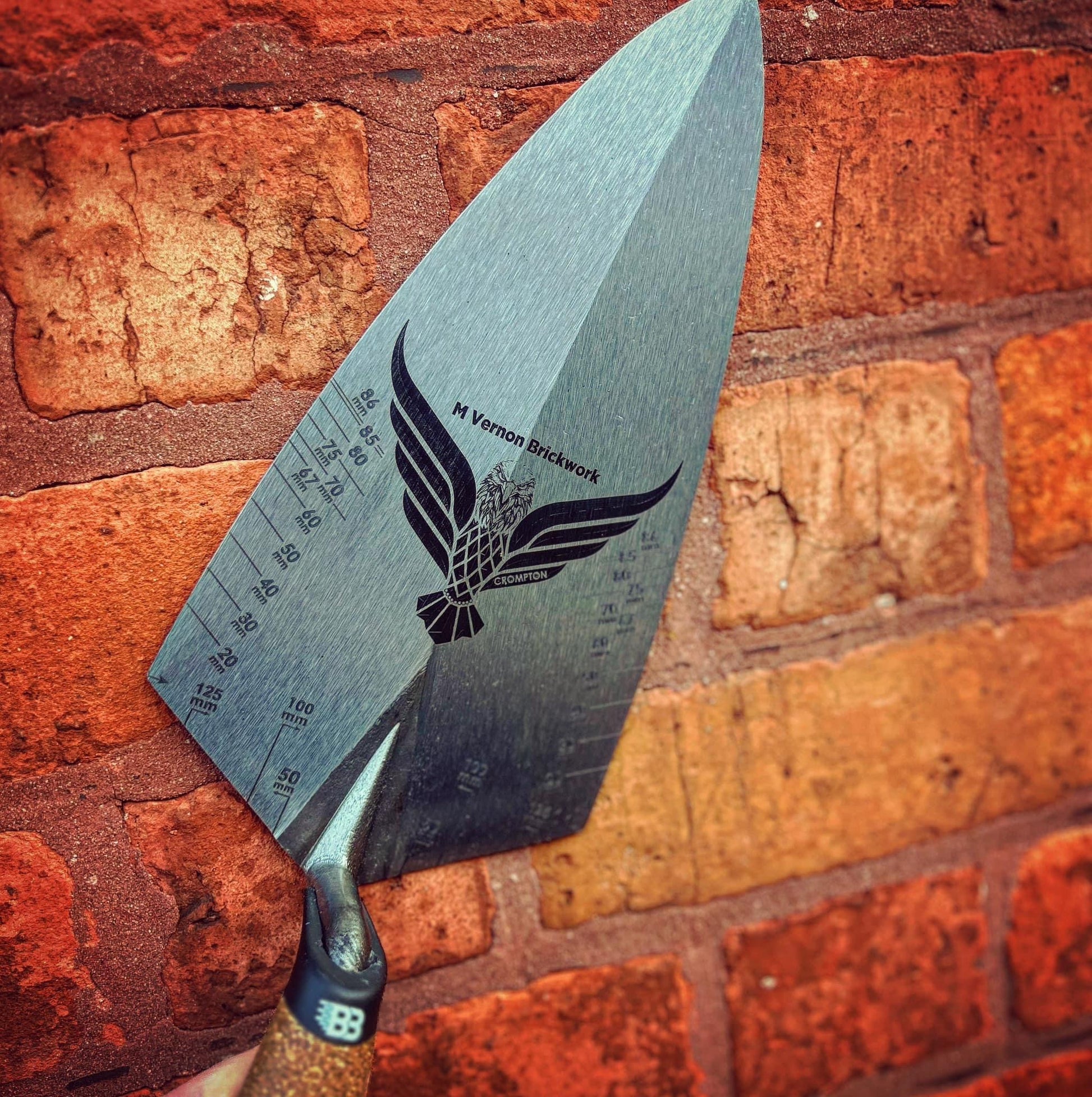 Company logo engraved brick trowel 11 inch crompton philidelphia