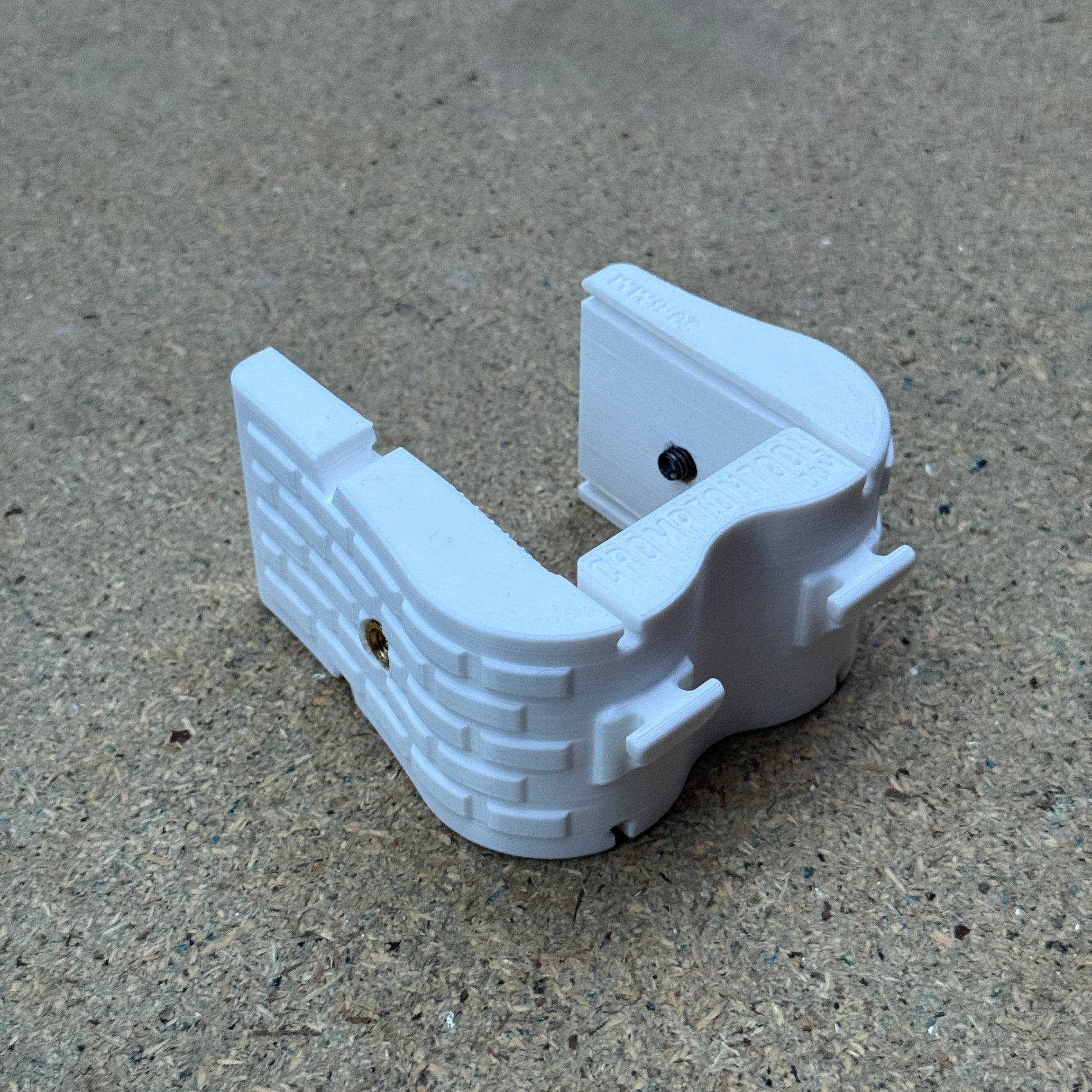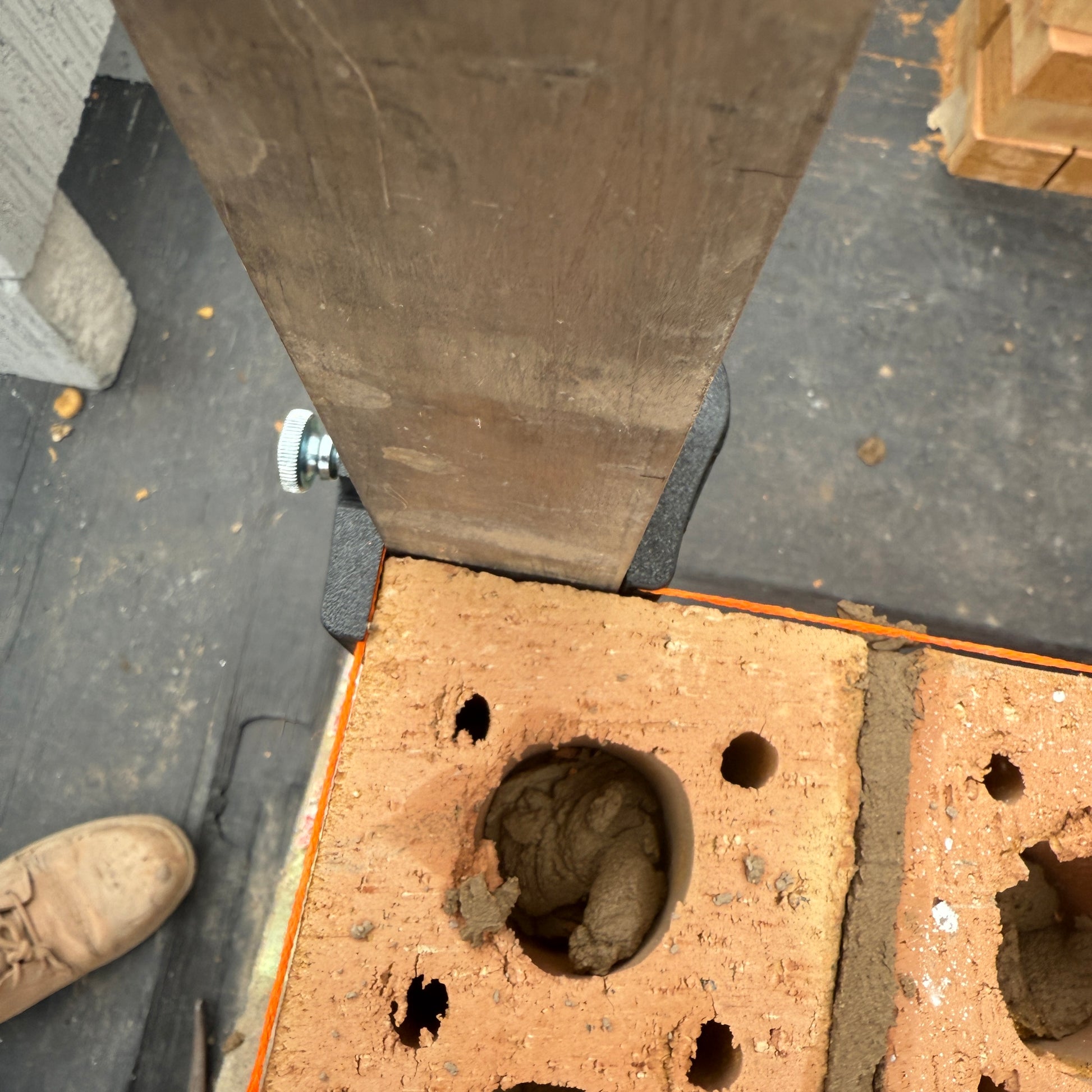 The new Crompton dori block is designed for 50.8mm bricklayers’ profiles, crafted from durable engineer-grade plastic. It allows you to run the string line both ways around a 90-degree corner with ease. Featuring two tie wraps at the back for secure line attachment and a small V on top for clear visibility of brick gauge lines. One arm is extended to offer a precise reference point for the brick, and its reversible design works on both ends. A metal screw and threaded inserts on both sides enable accurate height adjustments. Developed in the UK by experienced bricklayer Stu Crompton.